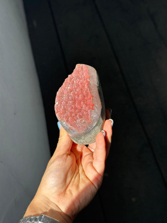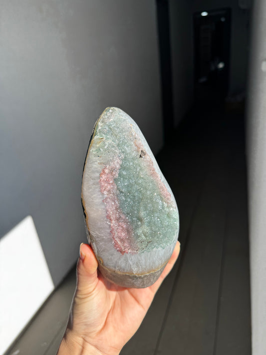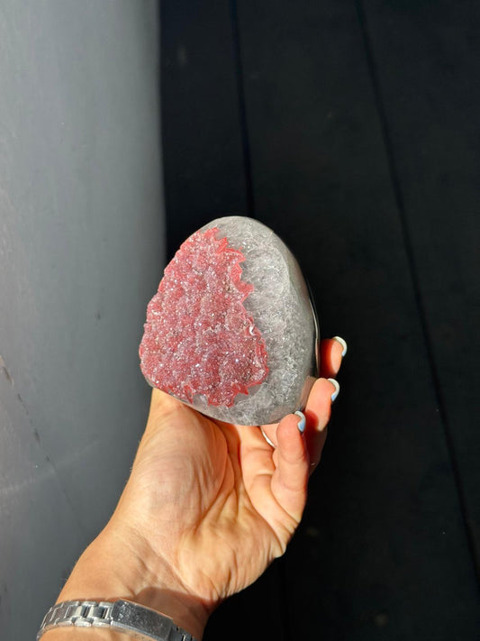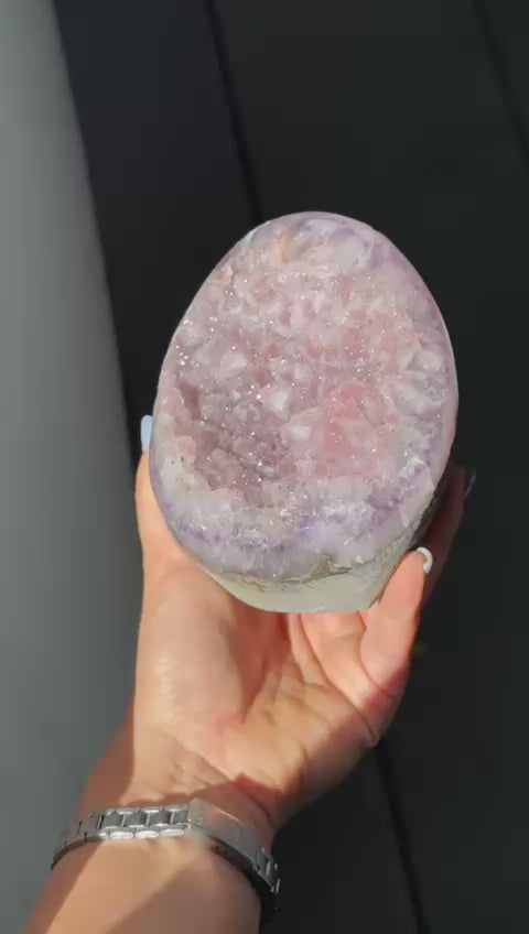 Pink rainbow amethyst cut base
